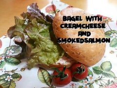 ベーグルサンド♪ ★クリームチーズandスモークサーモン★ 材料 (2個分) ベーグル 2個 クリームチーズ 50g スモークサーモン 30g サニーレタス 2枚 オリーブオイル 大1 塩 適量 粗挽...