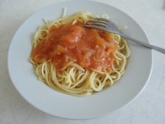 電子レンジで簡単♪無水トマトソースパスタ