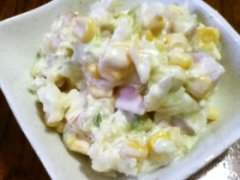 キャベツとコーンとハムのマヨネーズサラダ 【話題入りレシピ】 みじん切りにしたキャベツ・ハム・コーンをマヨネーズ+レモン汁で和えたサラダです。 材料 (3人~4人分) キ...