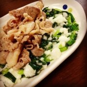 旨酢たれ豚コマの☆ニラとたたき長芋添え♪