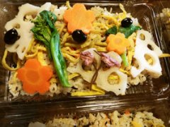 アルファー米でチラシ寿司 敬遠されたアルファー米が信じられない美味しいおチラシ寿司に アルファー米でチラシ寿司 西尾のアルファー米 人参 蓮根 卵 菜花 黒豆煮 すしのこ 塩漬...