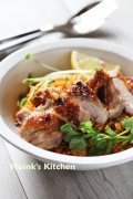 レッドカレーピラフのエスニックチキン丼 タイカレーペーストで作ったピラフにグリルしたチキンをのせたエスニックボウルです。お好きな薬味を添えて♪ レッドカレーピラフの...