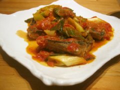 カレー風味の秋刀魚のトマト味噌煮込み