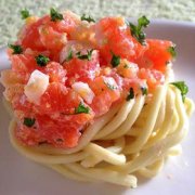 鮭といくらのミルクパスタ 秋の味覚の鮭といくらを使ったパス...