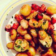 新ジャガと茄子とウインナのガーリック焼き