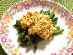 アスパラのバターソテー★マヨコチュ卵のせ