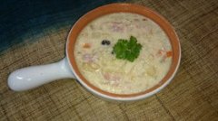 濃厚クリームシチュー サワークリームを加えた濃厚クリームシチューです。 材料 (3~4) ベーコンスライス 5枚 ジャガイモ 5個 玉ねぎ 1個 牛乳 250cc~300cc 調...
