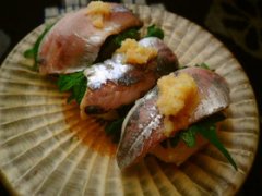 アジ寿司 小さなアジを酢でしめて青しそとおろし生姜でいただきます。アジと青しそは初夏からが旬で美味しくなります。 アジ寿司 アジ 青しそ おろし生姜 お米 米酢 きび砂糖 粗...