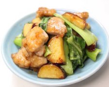 お父さんも作れる鶏肉と薩摩芋と青梗菜炒め