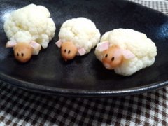 カリフラワーでひつじさん♡(お正月にも) カリフラワで簡単にモコモコひつじさんが出来ました♪ 2015年の干支のひつじさん!甘酢に漬けてお正月にもおすすめです! 材料 カリフラ...
