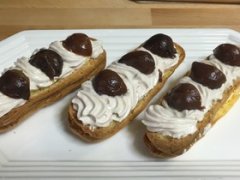 マロンのエクレール カスタードクリームとマロンの生クリームをサンドしたマロンのエクレアを作ってみました。東芝石釜オーブンER-LD330使用 マロンのエクレール 無塩バター 水...