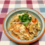 大根の卵とじ 短時間で出来上がる大根の煮物です。皮も葉っぱも食べよう!細く切るので早く煮え、ガス代節約になります。 材料 (4〜5人分) 豚肉 なくても可 70g〜 大根 1/3本 約...