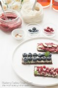 ブルーベリーとカシュークリームのトースト おやつや軽食向け。かんたんレシピ ブルーベリーとカシュークリームのトースト ライ麦パン ブルーベリー フレッシュミント 生カシュ...