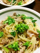 菜の花と豚細の粒マスタードパスタ