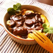 簡単♡とろけるチョコバナナパンプティング 浸し時間0だからフレンチトーストより時短!お皿1つでできるあったかスイーツ♡甘いもので元気になりたい日の朝食やおやつに♪...