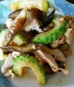 鶏胸と茄子と苦瓜の塩レモン炒め