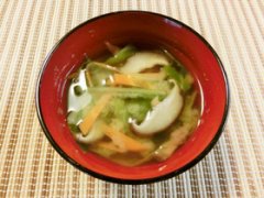 朝ごはんに!かぼちゃ人参厚揚げのみそ汁