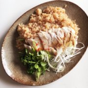 海南鶏飯・はいなんじーふぁん シンガポールのチキンライス。やわらか蒸し鶏と、スープをたっぷり吸ったふわとろごはんを、タイ風と中華風の2種類のソースで♪ 海南鶏飯・は...