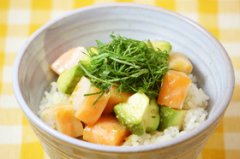 10分完成!火いらず!サーモンアボカド丼 作り方全部写真付!使う食材順に並んでます!簡単火を使わない丼ぶりです! 10分完成!火いらず!サーモンアボカド丼 醤油 みりん ごま...