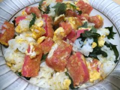 ☆島根名物赤天と、シソのチャーハン 島根名物赤天と、シソのチャーハン(小石原焼 上鶴窯の器を使用) ☆島根名物赤天と、シソのチャーハン 赤天 シソ ご飯 オリーブオイル 塩胡椒...