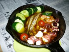 子持ちししゃも・えび・湯だこのアヒージョ 今夜のタパスはシーフードのオールスターのアヒージョで。子持ちししゃも・えび・湯だこを合わせてみたよ。ぼくとしては初めてね...