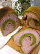 ☆春カラ—!カワイイ手捏ねマーブル食パン 春らしいカラーに! 紫芋のピンクに抹茶の緑! 見た目もかわいらしい本格手捏ね食パンです(^^) ☆春カラ—!カワイイ手捏ねマーブル...
