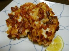 かじきの柿の種衣 お菓子を食べないのでたくさんある柿の種をおつまみにしました。 かじきの柿の種衣 かじき切り身 柿の種 小麦粉(コーティング用) 水溶き小麦粉 塩コショウ サ...