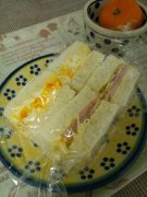いちどに2種サンド、ハムサンド玉子サンド 携帯に便利なサンドイッチ。サンドウィッチ? Sandwich♪食パン1枚に2種類の具を乗せて、真っ二つにカットしました いちどに2種サンド、...
