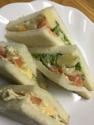 菜の花と卵のポテトサラダでサンドイッチ トマトも挟んだ! 菜の花と卵のポテトサラダでサンドイッチ サンドイッチ用食パン 菜の花とたまご入りのポテトサラダ トマトの薄切り...