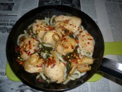 あかもく+若鶏胸肉たっぷりの焼きうどん