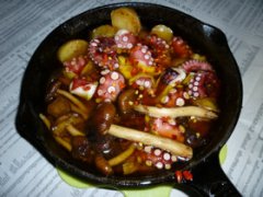 イシスキで湯だこ+柳松茸のアヒージョ
