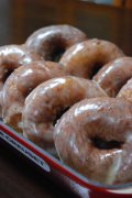 ドーナツ(2) メープルGLAZEのかかった アメリカ~ンなイーストドーナツ。甘めのドーナツ生地でおいしっ! ドーナツ(2) 牛乳 無塩バター グラニュー糖 塩 溶き卵 ドライイースト...