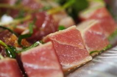 塩マグロのたたき風 マグロの端身はとっても安いですね~ でも筋っぽい? いやいや、ちょっとだけ火を通せばいいんです! 塩マグロのたたき風 マグロの端身 オリーブオイル 塩...
