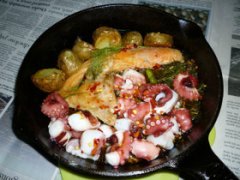 湯だこ・紅鮭カマ・フェンネルのアヒージョ 湯だこをゲットしたので、紅鮭のカマと合わせてみたよ。魚料理なので、フェンネルも使って、良いタパスが出来たね。 湯だこ・紅鮭...