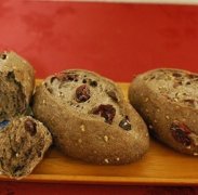 ココア&クランベリー&アーモンドパン 油脂の入らないセミハードパン。 ココアの生地にクランベリーとアーモンドダイスを練りこみました。 ココア&クランベリー&アーモンド...