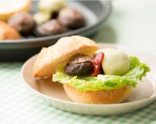 塩バターパンのしいたけステーキバーガー バーベキューにもおすすめ! 塩バターパンのしいたけステーキバーガー 塩バターパン しいたけ 合びき肉 スライスチーズ グリーンカール...