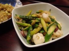 水だことアスパラのガーリックごまスコ炒め