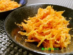 材料3品☆簡単☆人参たらこ 子供たちが小さい頃に人参大好きになった「人参たらこ」♪たらこの塩分とバターで炒めた人参の甘さが絶妙~ですよ! 材料 (2人分) 人参 1/2本 10...