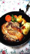 ☆スキレットでパリパリチキンソテー☆お店 パリパリに焼けた皮はとっても美味しい~~^^付け合わせのジャガイモも人参も素材の味そのままで十分です! ☆スキレットでパリパリ...