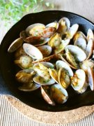 あさりのワイン蒸し シンプルにあさりの旨味を味わうワイン蒸し。スキレットならそのまま食卓に出してもお洒落♪ あさりのワイン蒸し あさり にんにく 白ワイン 胡椒パセリ オリ...