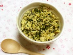大根の葉っぱの鶏そぼろ丼♪ 大根の葉っぱだって混ぜてしまえば美味しいですよ(^o^) 大根の葉っぱの鶏そぼろ丼♪ 大根の葉っぱ 鶏ひき肉 卵 サラダ油 生姜チューブ 料理酒 水 さと...