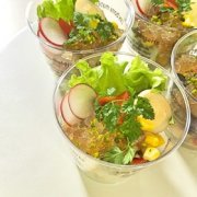 ジュレドレッシングのグレインズサラダ 持ち寄りパーティーにピッタリな女子ウケ抜群の食べやすくておしゃれなヘルシーサラダです 材料 (10人分) サラダ用玄米 140g 雑穀ミッ...
