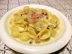クラムチャウダーでスープパスタ あさり缶と牛乳を使ったクラムチャウダーに、ショートパスタを入れました。 材料 (1人分) パスタ (写真はコンキリエ) 60~80g 玉ネギ 1/4個 じゃ...