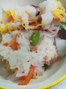 簡単!ちらし寿司♪ 冷凍枝豆や、ボイルえびやかにかまなど、あるもので簡単!ちらし寿司♪市販の寿司酢使います! 簡単!ちらし寿司♪ 白米 冷凍枝豆 ボイルえび きぬさや 桜で...