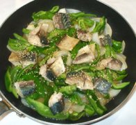 魚・さばとピーマンと新玉ねぎの味噌炒め