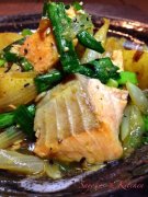 カレー風味の鮭じゃが 肉じゃがならぬ鮭じゃがです☆スパイシーなカレー風味で夏にピッタリ♬ カレー風味の鮭じゃが 生鮭 じゃがいも 玉葱 ニラ オリーブ油 昆布だし 酒 醤油 味...