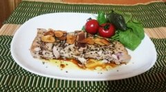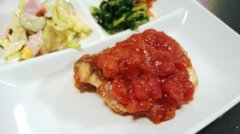 マグロと豆腐の和風にんにく煮込み大葉添え