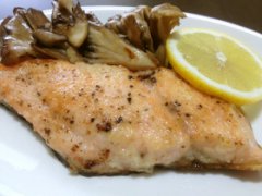 サーモンのムニエル(バター焼き) あっという間にできちゃいます! 冷めても美味しいので小さく切ってお弁当にも♪ サーモンのムニエル(バター焼き) サーモン 舞茸 レモン 塩 黒胡...