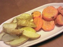 ☆漬け込んでオーブンにお任せ♪焼き野菜 肉料理の付け合せにうってつけ♪オーブンに任せるだけ、お皿に添えるだけ。超簡単。 材料 じゃがいも 2個 にんじん 1本 ●オリーブオ...