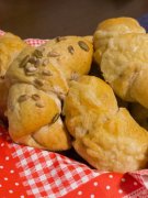 ヨーロッパ風♪全粒粉ナッツ入りチーズパン パン屋であまり売っていないので、ヨーロッパのパンを食べたくて作りました♪ふわふわでとても美味しいです♫ ElisabethF 材料 (10個分...